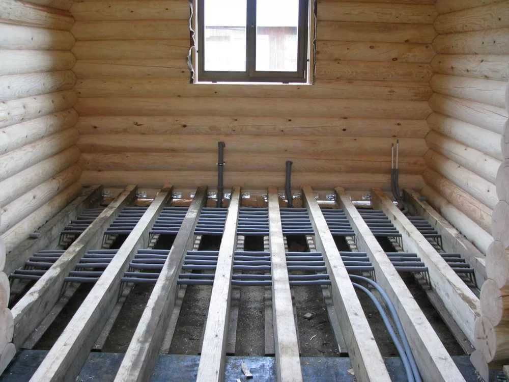 — Конструкция пола на строительных лагах дает возможность спрятать под пол все