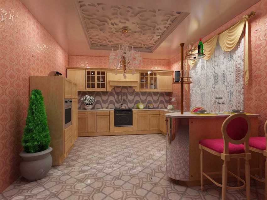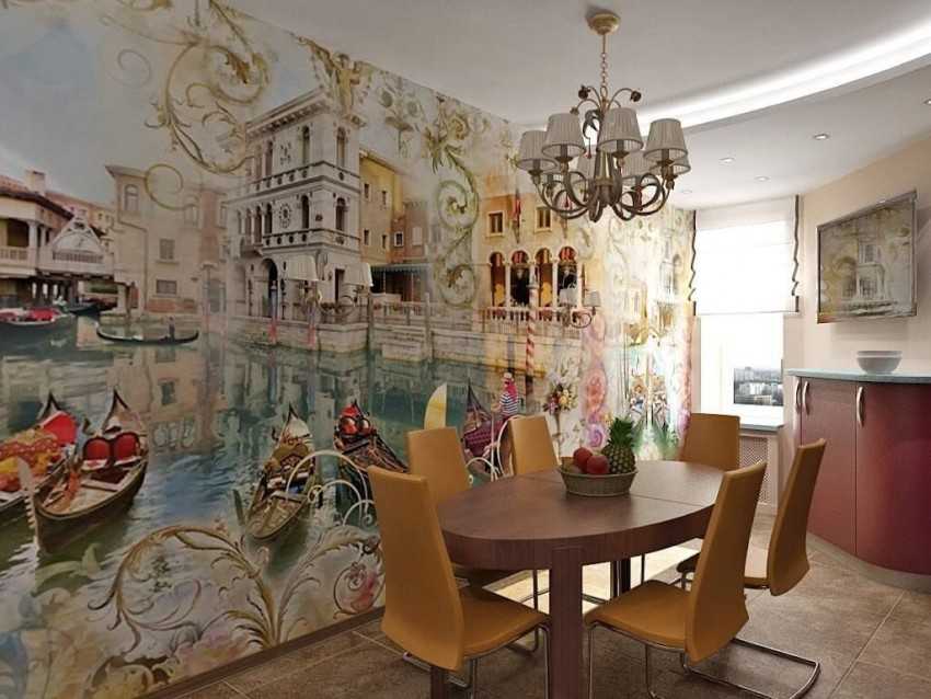 Покрытые лаком жидкие обои легко моются – это позволяет отделывать ими стены кухни