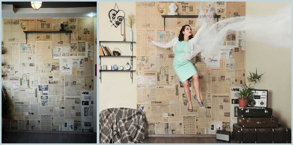 Газеты в итерьере — тема не новая, но и не слишком часто встречающаяся. Задавшись целью создать такую стену в фотостудии, я подобрала некоторые примеры удачного использования газет и печатных материалов в интерьере. Покажу их и расскажу о личном опыте от работы с данным материалом.
