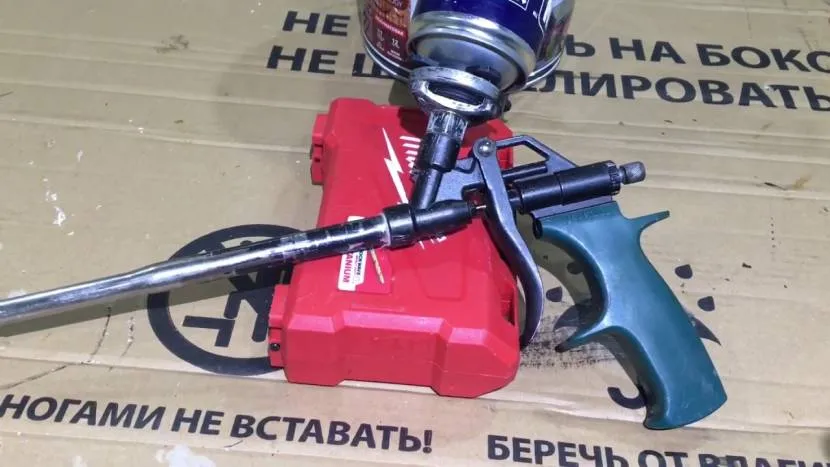 - Комбинация металла и пластика. Это не профессиональный инструмент, использовать его на постоянной основе не получится. Однако он относится к ремонтопригодным и способен пережить более крупный ремонт (например, в коттедже, на даче или в многокомнатной квартире). После окончания работ баллон с остатками пены обязательно снимают, а внутренние полости пистолета промывают.