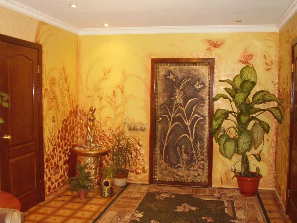 Творческая кропотливая работа, которая превращает дверь в декоративный элемент любого интерьера. Вся операция занимает целый день, в зависимости от сложности рисунка и выполняется с соблюдением следующих нюансов: