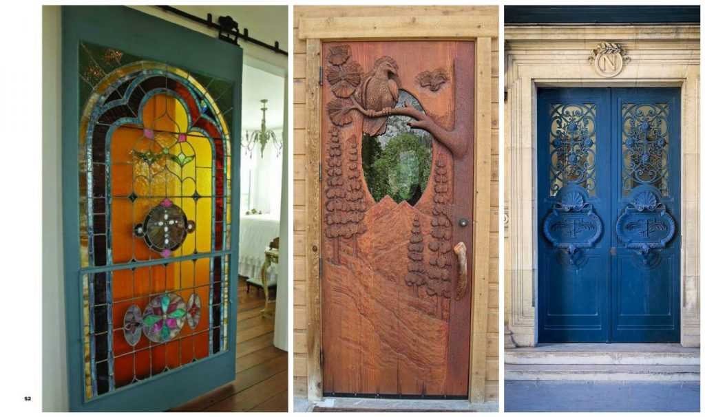 Такая декоративная отделка дверей идеально подходит для конструкций из натуральной древесины, имеющих привлекательную текстуру и интересный древесный рисунок. Еще один легкий и бюджетный вариант, доступный всем желающим.