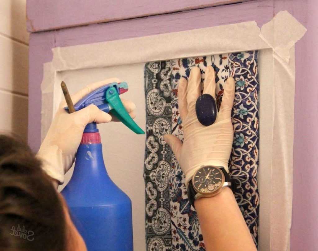 Подготовка. Уберите с двери всё, что мешает окрашиванию. Ручки, декоративные съемные элементы и пр. Стеклянные вставки закрываются при помощи малярного скотча.