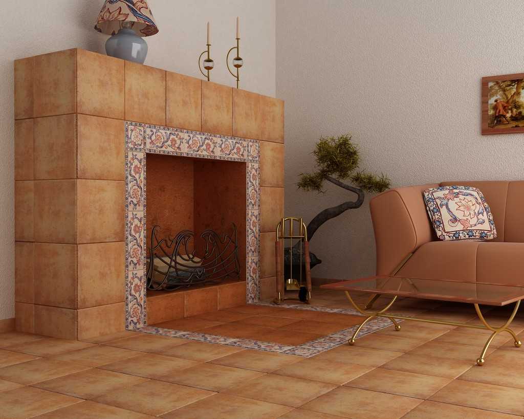 - Высокая степень теплопроводности у керамической плитки позволяет ей найти место в облицовке камина.