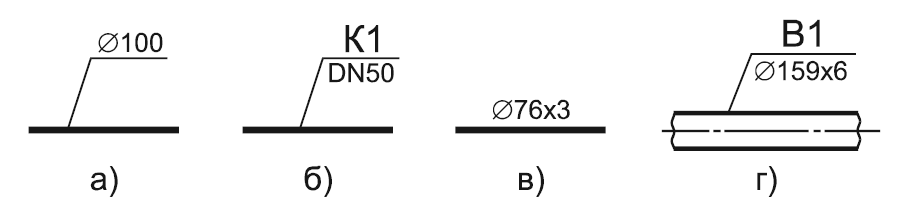 И возникает вопрос, как правильно указывается диаметр трубы? Далее приведены примеры правильного обозначения для некоторых видов трубопроводов.