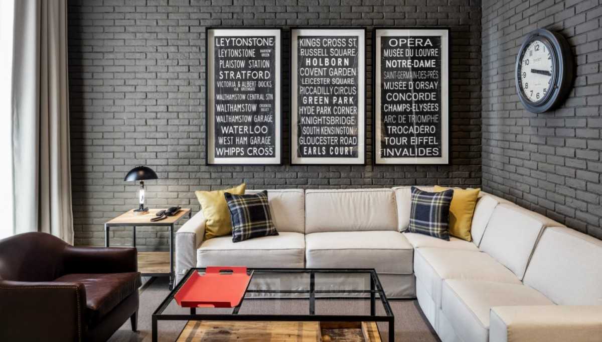 - Поп-арт. Забеленный кирпич в сочетании с яркой мебелью и картинами подчёркивает вызов и эмоциональный посыл интерьера.