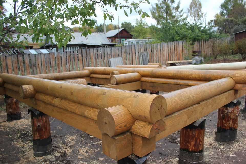 Ростверковый каркас из бруса.